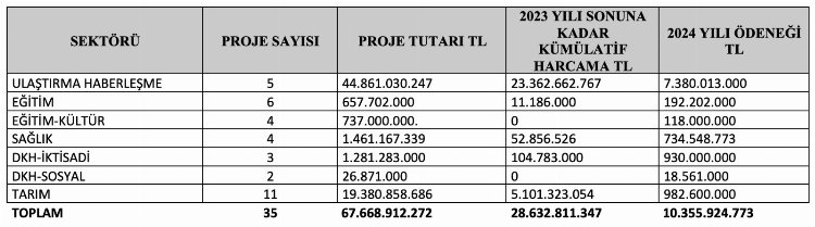 5. 2024 yılı yatırım programında Keşan yok!