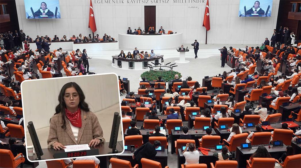 23 Nisan Ulusal Egemenlik ve Çocuk Bayramı merasim ve kutlamaları kapsamında bugün mükafatını almak için Ankara’ya giden Meşebükü Ortaokulu 6’ncı sınıf öğrencisi İrem İmamlı, TBMM’de bir konuşma yaptı. Konuşmasına Türkiye Büyük Millet Meclisi Kurucusu Gazi Mustafa Kemal Atatürk olmak üzere, tüm silah arkadaşları ile şehit ve gazileri anarak başlayan İrem İmamlı, Atatürk’ün çocuklara armağan ettiği 23 Nisan Ulusa Egemenlik ve Çocuk Bayramı’nın heyecanını doyasıya yaşadıklarını tabir etti. Kompozisyon müsabakasına katılma fırsatı yakalamanın heyecanını yaşadığını belirten İmamlı, “Atama, vatanıma olan sevgi, hürmet ve bağlılığımı lisana getirme fırsatı bulduğumu hissettim. Yazımı yazarken Meclis’in açıldığı birinci gün, Meclis’in bahçesinde koşturan, bayramın sevinç ve memnunluğunu doyasıya yaşayan bir çocuktum güya. Sözler bu hislerle döküldü yüreğimden. Kağıda aktı, gitti ve artık burada, huzurunuzda bu manalı günde bu manalı konuşmayı yapma fırsatı verdi” diye konuştu. TBMM Başkanı Numan Kurtulmuş’a da teşekkür eden İrem, “Binbir zorlukla kazanılan bu vatanın geleceği olan çocuklar olarak, Ceddimizin bıraktığı bu emaneti ilimde, fende, sanatta ve kültürde daha yükseklere ulaştırmak için çabalayacağız” dedi.