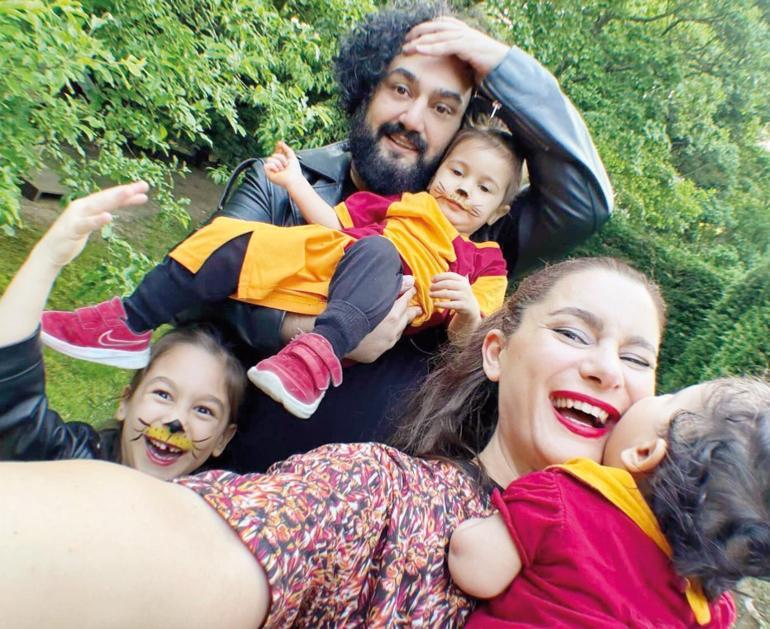 Galatasaray taraftarı Atiye, eşi Erol Sebebci ve kızlarıyla konutta kutlama yaptı.