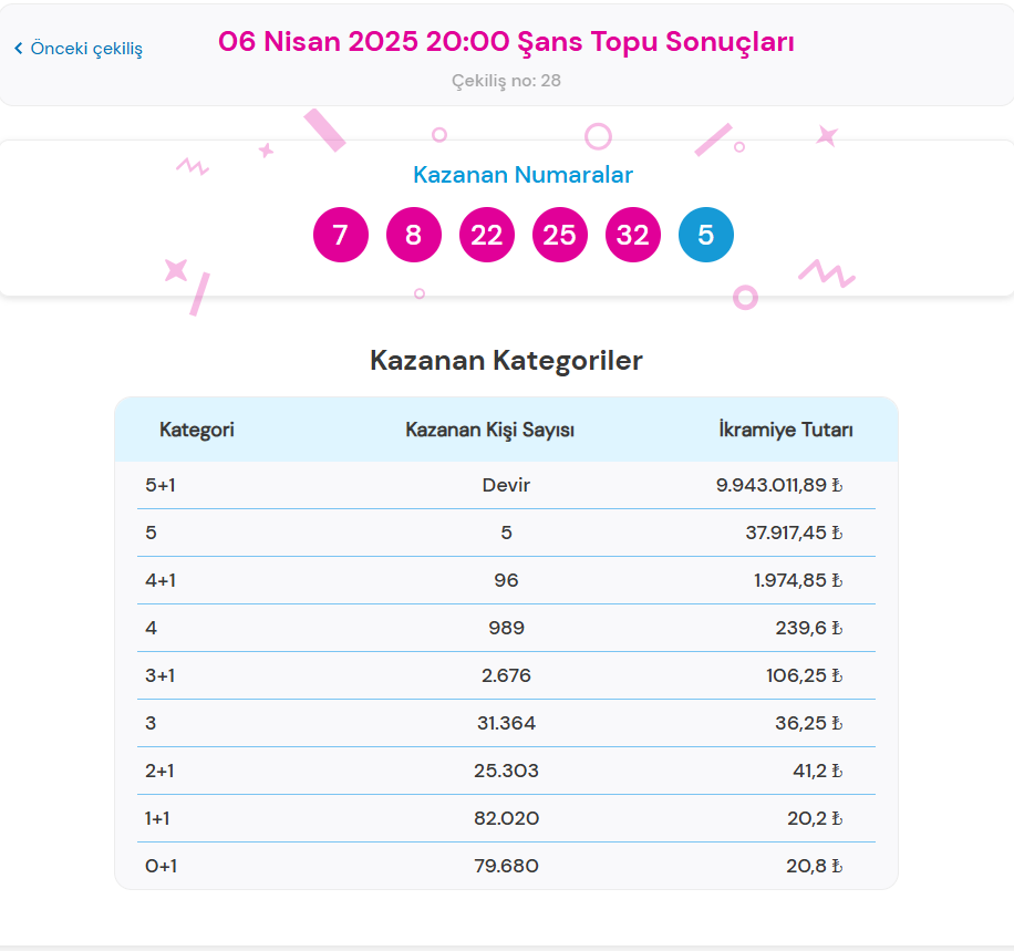 6 NİSAN 2025 TALİH TOPU SONUÇLARI