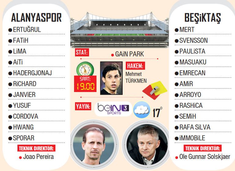 Süper Lig’in üçüncü sırada bitirmeyi hedefleyen Beşiktaş, küme düşme sınırının çabucak üzerinde yer alan Corendon Alanyaspor’a konuk olacak. GAİN Park Stadı’nda saat 19.00’da başlayacak çabayı, hakem Mehmet Türkmen yönetecek. Son 4 maçta 3 galibiyet, 1 beraberlik alan siyah beyazlılarda sakatlıkları bulunan Oxlade-Chamberlain, Zaynutdinov, Emirhan ve anneannesinin vefatından ötürü müsaadeli olan Gedson Fernandes oynamayacak. Yeniden son 4 müsabakada 2 galibiyet, 1 beraberlik, 1 yenilgi yaşayan konut sahibinde ise eksik yok. 58 puanlı Beşiktaş ile 38 puanlı Alanyaspor’un mücadelesi, ligi üçüncü bitirmeyi amaçlayan Samsunspor ve Başakşehir’in yanı sıra, küme düşme tehlikesi yaşayan Bodrum FK, Sivasspor, Ç.Rizespor, Gaziantep FK ve Antalyaspor’u da yakından ilgilendiriyor.