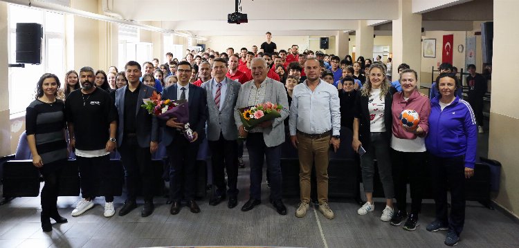 Okul Müdürü Tayfun Şahin de sporun ve sporcuların önemine değinerek, öğrencilerin başarılı sporcularla bir araya gelmesinden memnuniyet duyduğunu ifade etti.