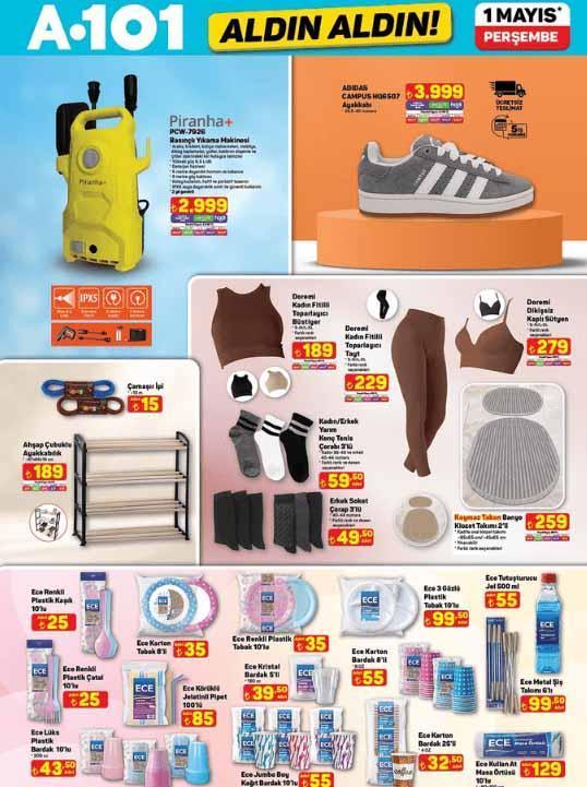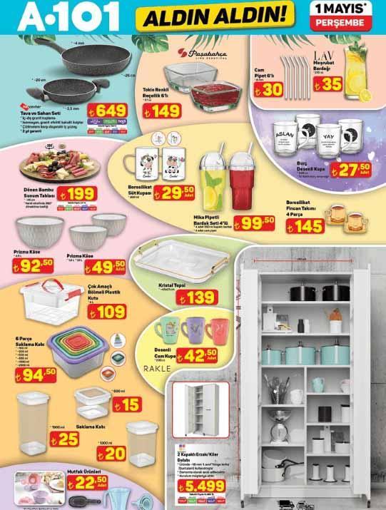 A101 bu Perşembe aktüel eserleri ve fiyat listesi tamamı yayınlandı. 1 Mayıs 2025 A101 indirim broşürü ile yeniden pek çok eser seçeneği raflarda hazır edilecek. Bu hafta A101 kataloğu içerisinde kamp çadırı, saklama kapları, kristal tepsi, Campus spor ayakkabısı, ahşap çubuklu ayakkabılık, 50’li mutfak havlusu, cam elektrikli cezve, cam su ısıtıcı A101 marketlerde alışveriş severlerin beğenisine sunulacak. Pekala 1 Mayıs bu hafta A101’de indirimli ve yeni neler var? İşte 1 Mayıs Perşembe A101 Aldın Aldın broşürü…