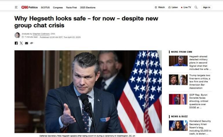 İngiliz Guardian gazetesi ABD Savunma Bakanı Pete Hegseth’in Yemen’e taarruz planlarını Signal uygulaması üzerinden yakınlarıyla paylaştığı argümanı sonrası Pentagon’da tam bir çöküş yaşandığını argüman ederken, CNN International da ABD’li bakan ile ilgili dikkat çeken kelamlara imza attı;