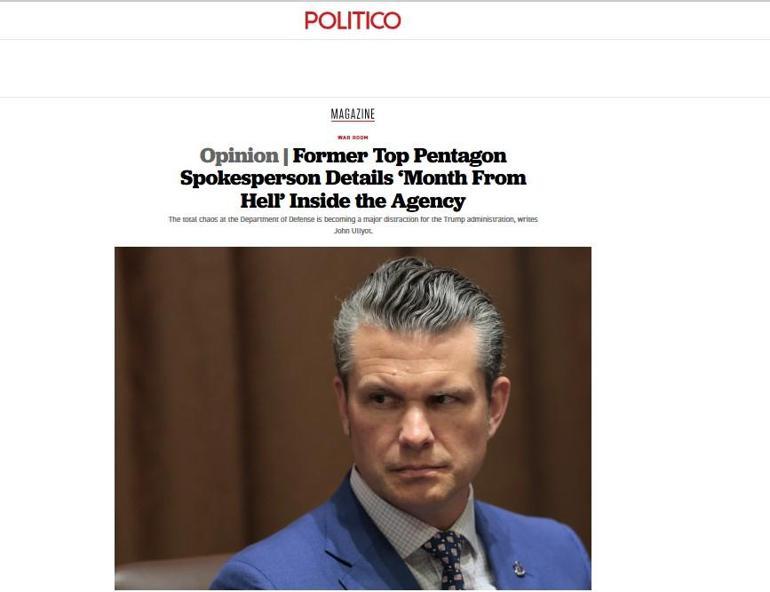 Pentagon sözcüsü olarak vazife yaptıktan sonra geçen hafta istifa eden John Ullyot, Pazar günü Politico’da yayınlanan makalesinde, Pentagon’un ikinci Trump idaresi nedeni ile bunaldığını belirterek “Pentagon’da bir aydır hassas operasyonel planların sızdırılmasından, toplu işten çıkarmalara kadar tam bir kaos yaşanıyor.” diye yazdı.