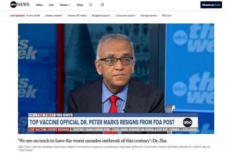 Eski Beyaz Saray Koronavirüs Müdahale Koordinatörü ve Brown Üniversitesi Halk Sağlığı Fakültesi Dekanı Dr. Ashish Jha, ABC News’e yaptığı açıklamada “Bu yüzyılın, son 25 yılın en makûs kızamık salgınını yaşama yolunda ilerliyoruz” demiş, enfeksiyonlarının bağışıklamayla önlenebileceğini vurgulamıştı.