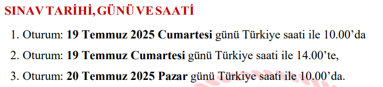 3. Oturum: 20 Temmuz 2025 Pazar günü Türkiye saati ile 10.00’da.