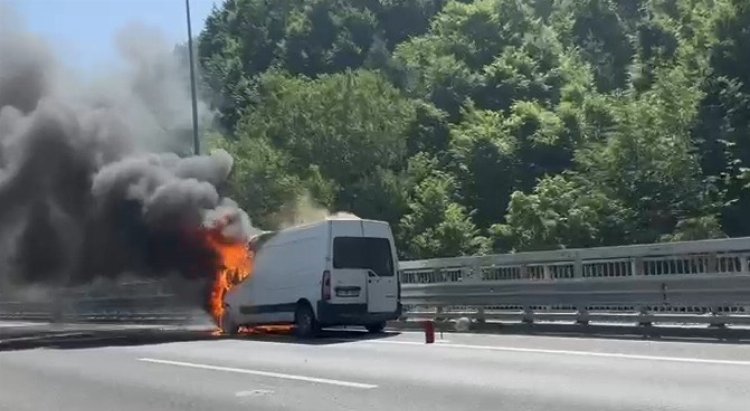 Anadolu Otoyolu Bolu Dağı mevkisinde seyir halinde olan minibüs bilinmeyen bir nedenden dolayı alev aldı.