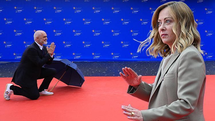 Arnavutluk Başbakanı Edi Rama, İtalya’nın Başbakanı Giorgia Meloni’yi kırmızı halıda alışılmadık bir jestle karşıladı. Rama’nın diz çökerek selamladığı Meloni, bu sürpriz hareket karşısında gülümsemekle yetindi.