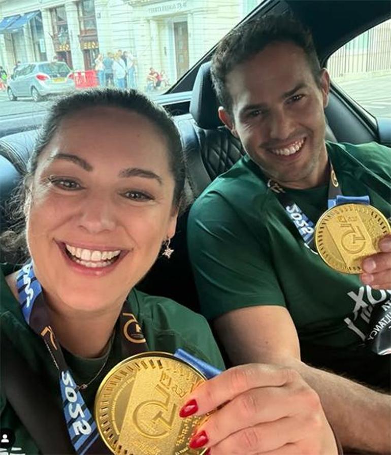 Ama tekrar de hem kendisi hem de 39 yaşındaki kocası Jeremy Parisi, maratona katıldıkları için birer madalya sahibi de oldu.