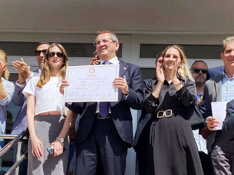 Ayvalık Adliye Binası önünde toplanan kalabalık bir vatandaş grubunun sevgi gösterileri arasında YSK İlçe Seçim Kurulu Başkanı Hakim Yağmur Çaprak’ın elinden mazbatasını alan Mesut Ergin’i eşi Canan Ergin ve kızı Nazan Ergin de yalnız bırakmadı.