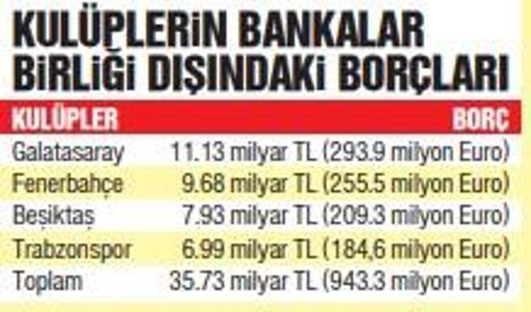 4 Büyükler toplamda 8.66 milyar TL olan Bankalar Birliği borçlarından kurtulsa bile ekonomik olarak rahata kavuşamıyor. Ezeli rakiplerin Şubat 2025 yılı itibariyle Bankalar Birliği haricinde toplam 35 milyar 750 milyon TL borcu bulunuyor. Bu da yaklaşık 943.3 milyon Euro’ya denk geliyor. Burada tepe 11.13 milyar TL ile Galatasaray’ın. Sarı kırmızılıları 9.68 milyar TL ile F.Bahçe izlerken Beşiktaş da 7.93 milyar TL ile 3. basamakta. Bankalar Birliği’ne borcu kalmayan Trabzonspor’un da ayrıyeten 6.99 milyar TL borcu bulunuyor.