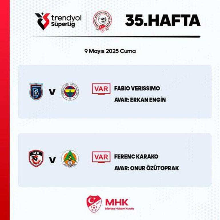 Merkez Hakem Kurulu (MHK) 9 Mayıs Cuma günü oynanacak Süper Lig maçlarının VAR hakemlerini açıkladı.