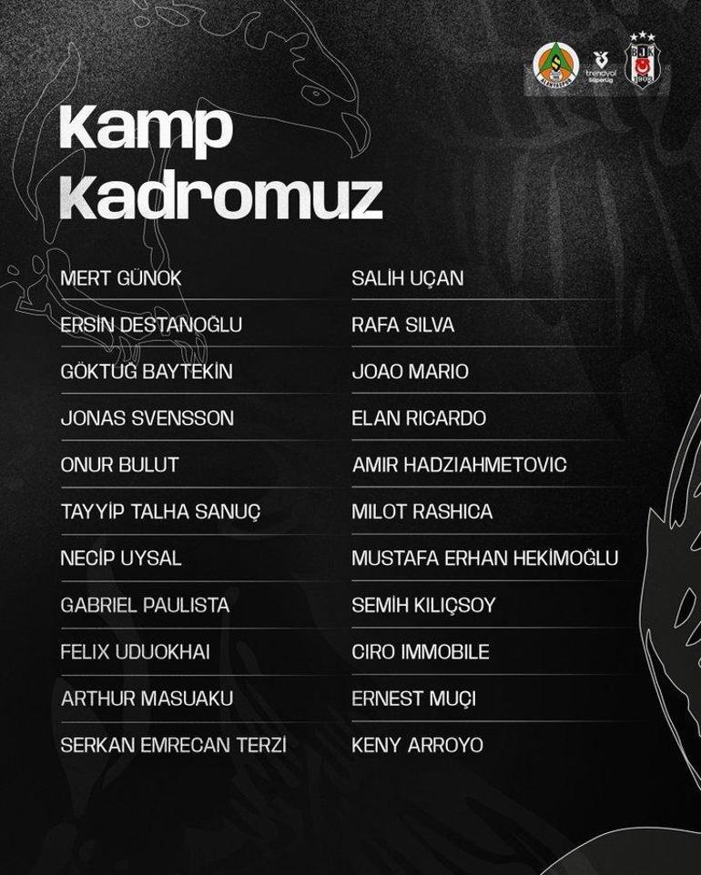 Beşiktaş, C. Alanyaspor maçının kamp takımını duyurdu.
