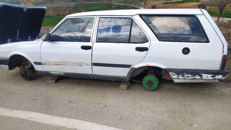 Bilecik’in Bozüyük ilçesinde Poyra O.S.B mevkiinde M.Ö adlı şahsa ait park halindeki otomobilin lastik, jant, akü ve stepnesinin çalınması üzerine asayiş ekipleri harekete geçti.