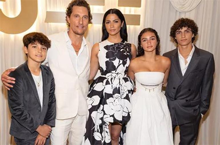 Uzun kelamın kısası, Camilla Alves ve Matthew McConaughey, çocuklarıyla birlikte geceye damgalarını vurdu.