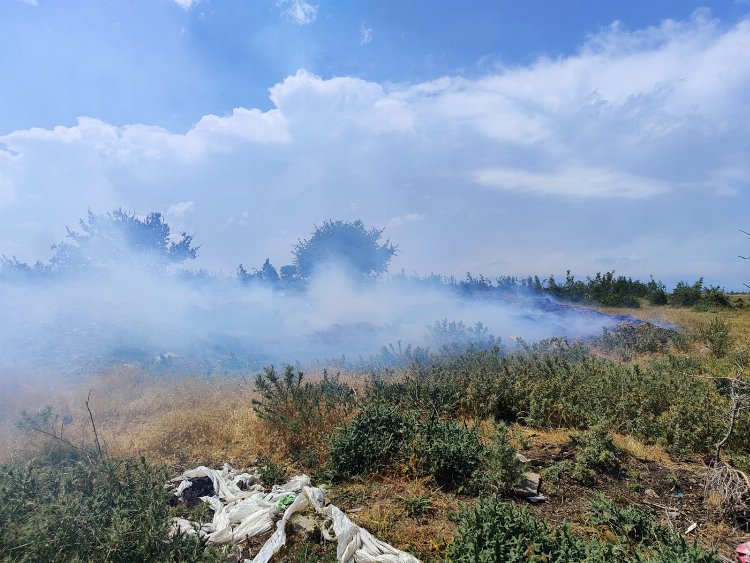 Buğday tarlasında çıkan yangın rüzgarında etkisi ile karşı tarafa atlayarak büyüdü.