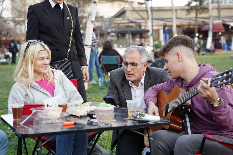 Nilüfer Üç Fidan Parkı’nda da gençler ile biraraya gelen Çolak, gitar ile çalınan şarkılara eşlik etti. Burada gençlerle yaptığı söyleşi de Çolak; “Düzenleyeceğimiz kültürel etkinliklerle Nilüfer’i yıldızı parlayan ilçe haline getireceğiz. Genç sanatçılarımıza başta mekânsal olmak üzere destek programları sunarak, kültür ve sanat üretimlerini teşvik edeceğiz” diye konuştu.