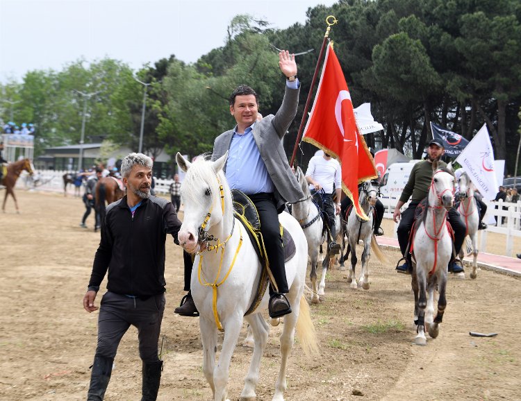 Osmangazi Belediye Başkanı Erkan Aydın, yarış alanına ata binerek giriş yaptı. Mahalle meydanında aracından inen ve yarış alanına kadar tüm yolu at sırtında ilerleyen Başkan Aydın’a rahvan atçıları da at binerek eşlik etti. At sırtında tüm yarış parkurunu turlayarak izleyicileri selamlayan Başkan Aydın’ı vatandaşlar alkış yağmuruna tuttu.