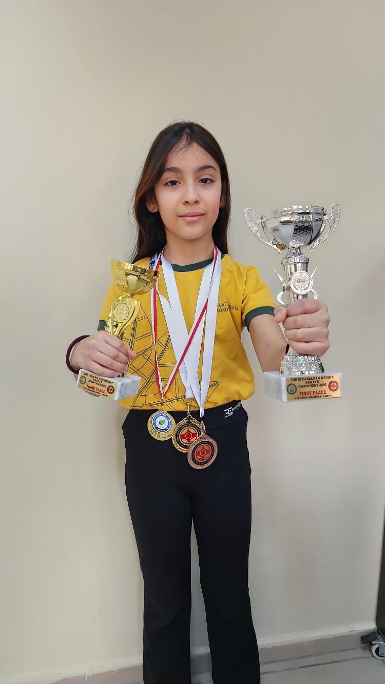 Bu yıl ilk defa ülkemizin ev sahipliği yaptığı Kyokushin Karate Balkan şampiyonasında 8-9 yaş 30 kg Alt minik grubunda 4 rakibini yenerek komitede Balkan Şampiyonu, KATA stil branşında da 3. Olarak ülkemizi temsil etti. Nesrin Fuat Bursalı İlkokulu Okul Müdürü Vahit Ağralı, “Bu sene ilk defa ülkemizin ev sahipliği yaptığı Kyokushin Karate Balkan şampiyonasında dereceye girerek bizleri gururlandıran öğrencimiz Öykü Salman’ı tebrik ediyorum. Nesrin Fuat Bursalı İlkokulu olarak çeşitli spor branşlarında faaliyet gösteren öğrencilerimize desteklerimizi sürdürmeye devam edeceğiz” dedi.
