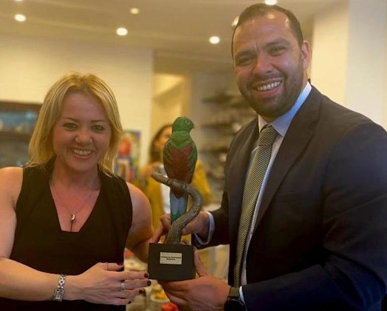 Ziyaret kapsamında, Guatemala’nın ulusal sembolü olan Quetzal kuşunun yer aldığı özel bir plaket, BonBon Atelier’in sahibi His Söylemez’e takdim edildi.