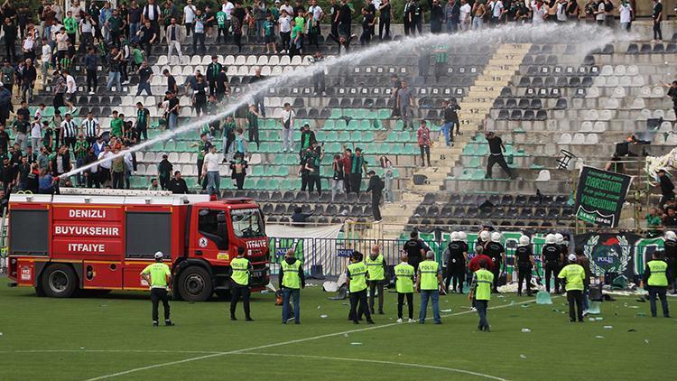 Koltukları kırarak alana atan taraftarlar tribünde pankartları ateşe verdi. İki ekip futbolcularına da öfke kusan taraftarlara alana giren itfaiye su sıktı. Denizlisporluların futbolcular, idare ve rakibe yansısı stat dışında da uzun mühlet devam etti.