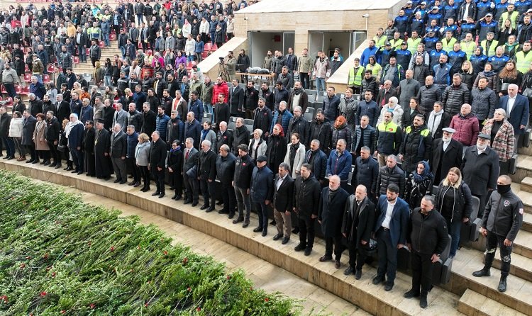 HBB Expo Yerleşkesi Amfi Tiyatroda deprem şehitlerini anmak ve hatıralarını yaşatmak için düzenlenen anma töreni saygı duruşu ve İstiklal Marşı’nın okunmasıyla başladı.