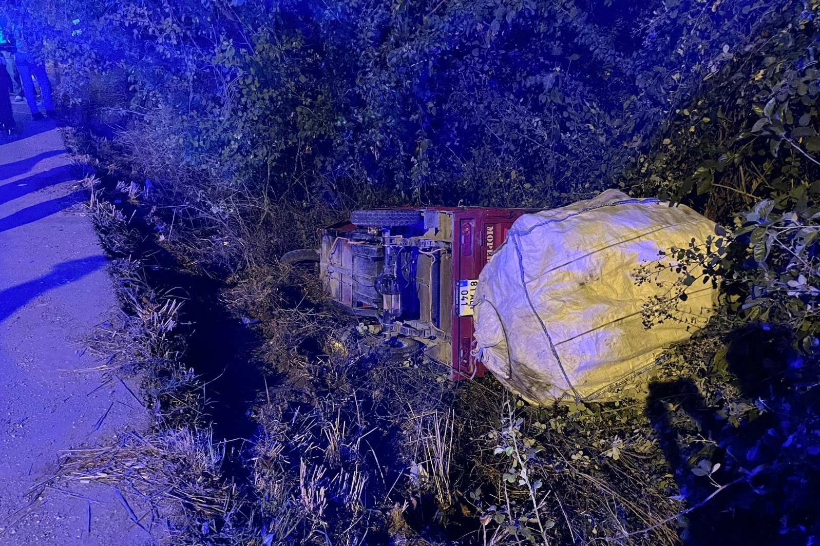 Yol kenarında bulunan tarlaya devrilen Elektrikli kağıt toplama aracında bulunan Sürücü A.D. ve yanında bulunan oğlu D.D. Hafif şekilde yaralandı.
