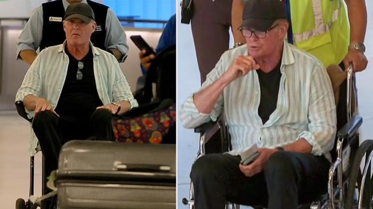 Tekerlekli sandalyede oturan Hasselhoff, o gün nedense yürümekte zorlandı.