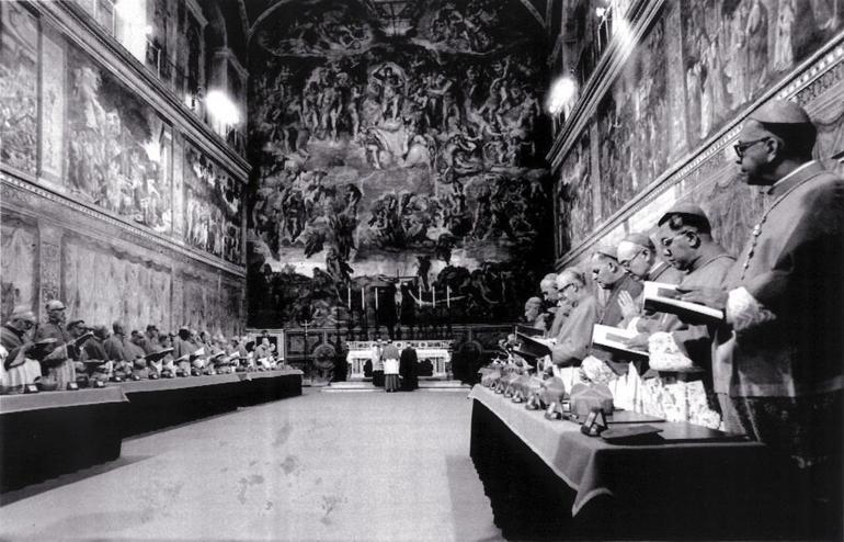 Hatta kardinallerle Kutsal Ruh’un ortasındaki pürüzü kaldırıp karar verme sürecini kolaylaştırmak için salonun tavanı bile yıkıldı.