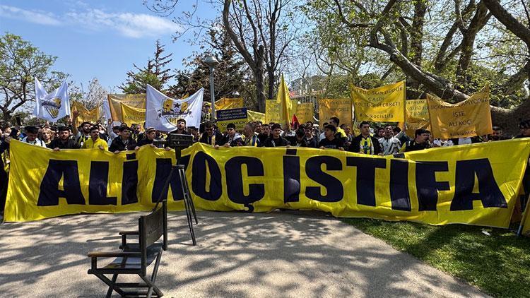Kalamış’taki Fenerbahçe Parkı’nda toplanan sarı-lacivertli taraftarlar “Ali Koç istifa” yazılı pankart açarken birçok dövizle de istifa davetinde bulundu.