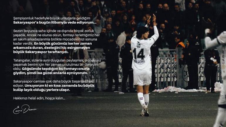 Sezonu Sakaryaspor’da kiralık geçiren Emre Demir, 1. Lig’de 2024-25 döneminin tamamlanmasıyla birlikte kulübe ve taraftarlara veda etti. Sakarya ekibi, ligi 13. sırada tamamladı.