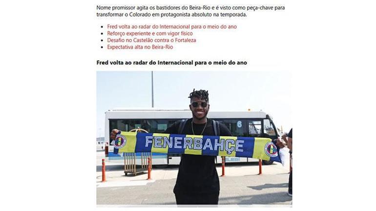Brezilya basınında yer alan argümana nazaran Fred, eski grubu Internacional’in amacında.
