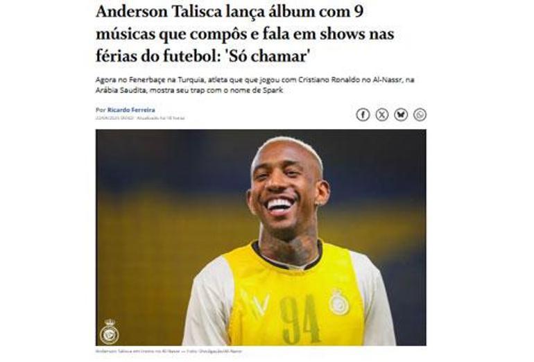 Talisca, 15 Mayıs’ta 9 müzikten oluşacak Notas isimli albümü öncesi Brezilya basınına konuştu.