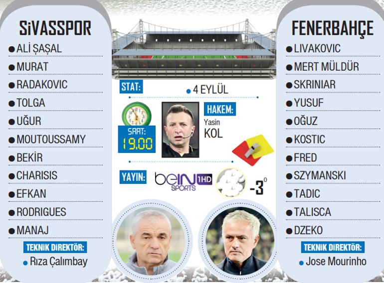 F.Bahçe’nin Sivas deplasmanındaki en büyük çekincelerinen biri hava ve saha koşulları… Hakikaten Mereroloji Genel Müdürlüğü’nün iddialarına nazaran, bugün maçın oynanacağı saatlerde kar yağışı bekleniyor. Müsabaka sırasında sıcaklığın -5 dereceye kadar düşme ihtimali de bulunuyor. Sivas’ta evvelki gün kar yağışı tesirli olurken – 14’e düşen soğuk havanın da tesiriyle 4 Eylül Stadı’nın yerinin bir kısmı karla kaplandı.