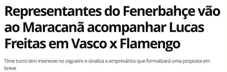 Fenerbahçe kulübün temsilcilerinin dün gece oynanan Maracana Stadyumu’nda oynanan Vasco – Flamengo maçında Freitas’ı tribünden takip ettiği ve performansını hayli beğendikleri, menajerine de yakın vakitte kulübüne bir teklif yapılacağı bilgisini ilettikleri kaydedildi.
