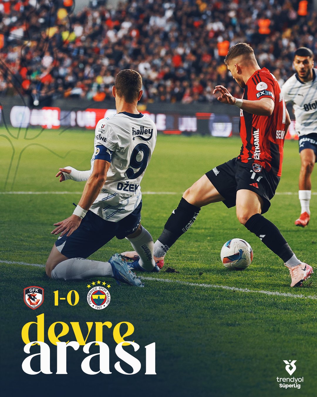 Karşılaşmanın 7. dakikasında ceza alanında sarı – lacivertlilerde Edin Dzeko, Semih Güler ile girdiği uğraşta yerde kaldı. Yaşanan bu konumun akabinde gözler karşılaşmanın hakemi Direnç Tonusluoğlu’na döndü lakin oyunu devam etti.