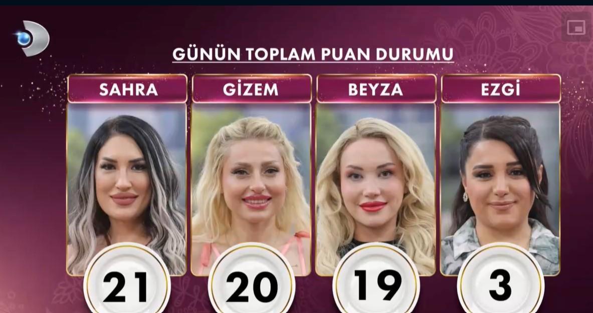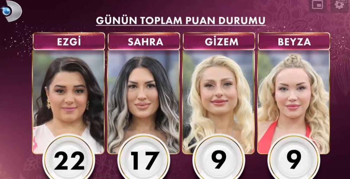 Haftanın ikinci gününde çeyreği alan gelin Ezgi oldu. Sahra ise ne yazık ki kadayıfları yaktığı için eksi 2 ceza puanı aldı.