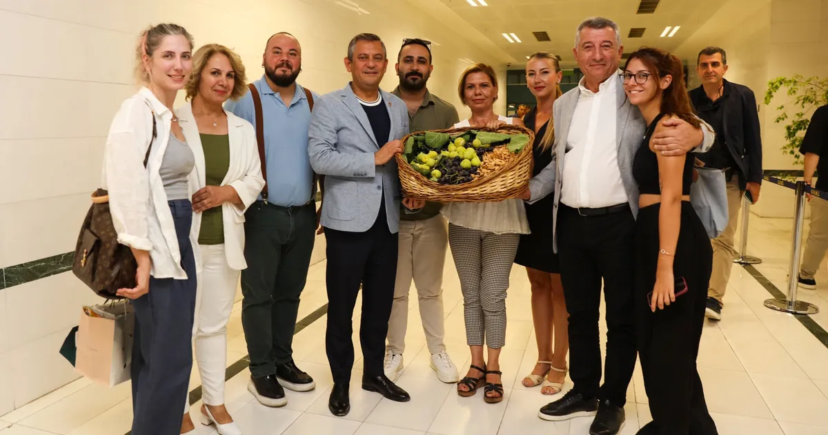 Cumhuriyet Halk Partisi (CHP) Genel Başkanı Özgür Özel’i akşam saatlerinde Manisa’da bir düğüne katılmak üzere, İzmir Adnan Menderes hava Limanı’nda karşılayan Güzelbahçe Belediye Başkanı Mustafa Günay, CHP Güzelbahçe İlçe Başkanı Devrim Seyrek, CHP Kadın Kolları Başkanı, Hülya Pilor, CHP Güzelbahçe Gençlik Kolları Başkanı Eren Kırca, CHP Güzelbahçe Gençlik Kolları önceki dönem Başkanı Şeyda Çiftçi, CHP Malatya İl Kdın Kolları Başkanı Nezahat Aydın karşıladı. Başkan Mustafa Günay, 10.’sunu düzenleyecekleri Payamlı Bardacık Festivali’ne bardacıklı bir sepet vererek Genel Başkanı davet etti.