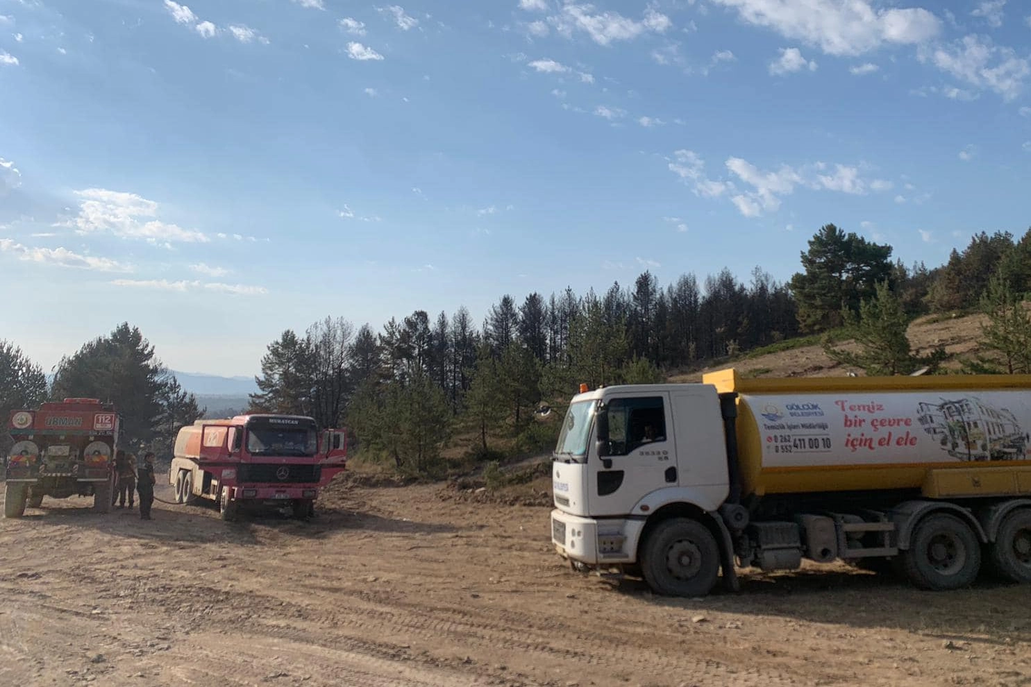 Kısa sürede bölgeye ulaşan belediyeye ait su tankerleri ve personel, Gerede’de devam eden orman yangını söndürme çalışmalarını sürdüren ekiplere destek veriyor.