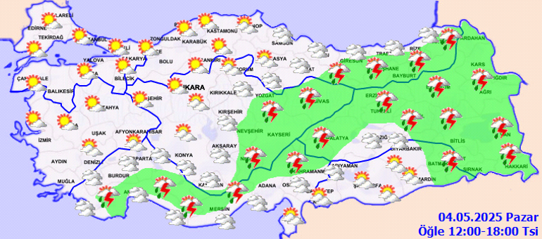 Parçalı ve az bulutlu, öğlen saatlerinden sonra lokal sağanak ve gök gürültülü sağanak yağışlı