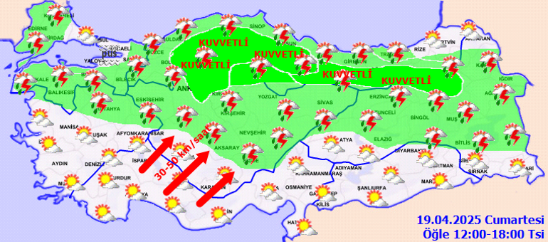 Parçalı ve az bulutlu, vakitle çok bulutlu, öğlen saatlerinden iitbaren aralıklı sağanak ve gök gürültülü sağanak yağışlı
