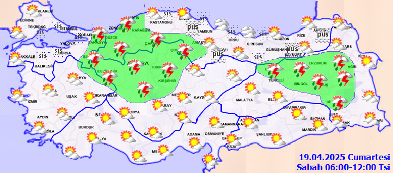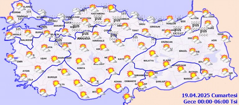 Meteoroloji Genel Müdürlüğü tarafından yapılan iddialara nazaran, ülkemizin kuzey ve iç kısımlarının modüllü ve çok bulutlu, yarın (Cumartesi) Marmara’nın güney ve batısı, İç Anadolu’nun kuzeyi, Batı ve Orta Karadeniz, Doğu Karadeniz’in iç kesitleri, Ardahan dışında Doğu Anadolu’nun kuzeyi ile Kocaeli, Sakarya, Kütahya, Giresun, Trabzon, Aksaray, Niğde, Bitlis, Elazığ ve Van etraflarının sağanak ve gök gürültülü sağanak yağışlı, öteki yerlerin az bulutlu ve açık geçeceği kestirim ediliyor. Yağışların, Ankara’nın kuzey ve doğusu, Çankırı, Bolu’nun doğusu, Karabük, Kastamonu, Çorum, Amasya, Tokat, Gümüşhane, Bayburt ve Erzurum etraflarında mahallî kuvvetli olması bekleniyor. Gece ve sabah saatlerinde Marmara ve Karadeniz etraflarında sis ve pus hadisesi bekleniyor. Rüzgarın,yarın öğlen saatlerinde İç Anadolu’nun güney kısımlarında güney taraflardan (30-50 km/saat) kuvvetli esmesi varsayım ediliyor.