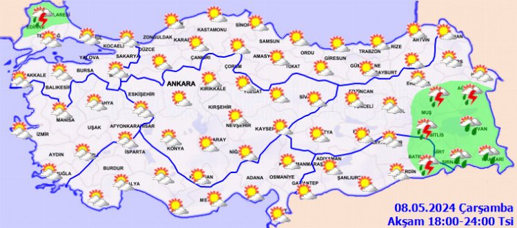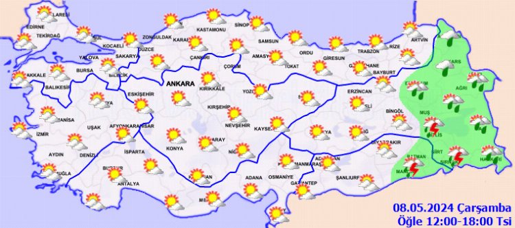 Meteoroloji Genel Müdürlüğü 8 Mayıs Çarşamba gününe ilişkin günlük hava tahmin raporunu yayımladı.