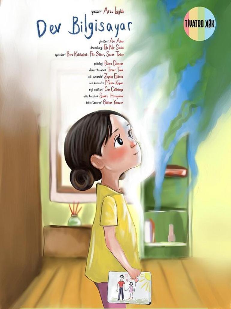 ‘Dev Bilgisayar’ tiyatro oyununda Defne, kukla arkadaşı Kekik’le birlikte mutsuz olduğunu düşündüğü babasını memnun edebilmek için makineler tasarlıyor ve dev bilgisayardan yardım alıyor.