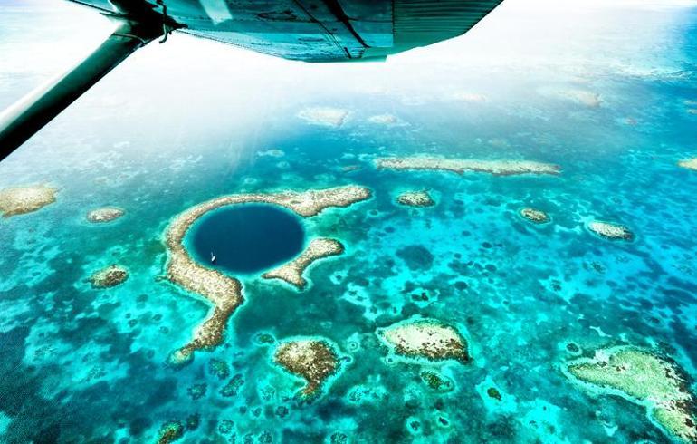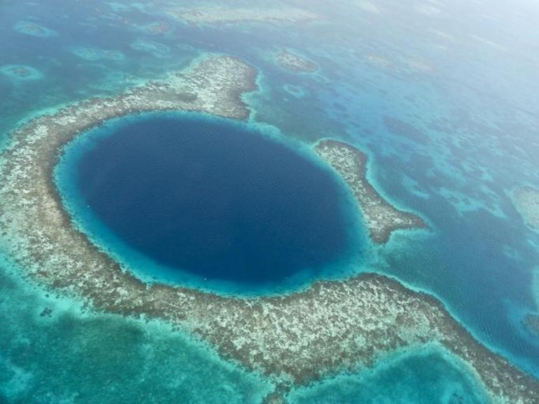 3- Mavi Çukur, UNESCO Dünya Mirası Alanı olan Belize Bariyer Resifi’nin bir kesimi.