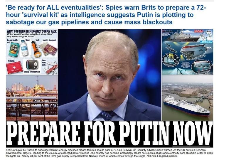 İngiliz medyası kelam konusu uyarıyı ‘Putin için hazırlanın’ başlığı ile okuyucularına sundu ve acil durum çantasında olması gerekenleri sıraladı..