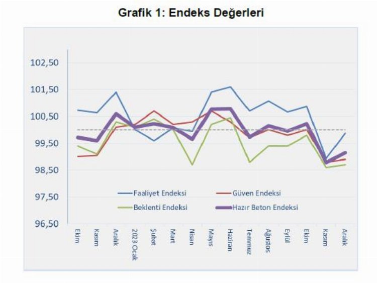 – İnşaat sektörünün en temel girdilerinden biri olan ve aynı zamanda üretiminden sonra kısa bir süre içerisinde stoklanmadan inşaatlarda kullanılan hazır betonla ilgili bu Endeks, inşaat sektörünün büyüme hızını ortaya koyan öncü bir göstergesi olan Hazır Beton Endeksi’nde son veriler yayımlandı.