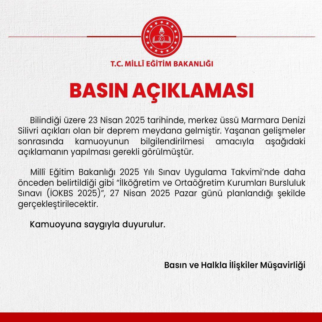 “Bilindiği üzere 23 Nisan 2025 tarihinde, merkez üssü Marmara Denizi Silivri açıkları olan bir sarsıntı meydana gelmiştir. Yaşanan gelişmeler sonrasında kamuoyunun bilgilendirilmesi maksadıyla aşağıdaki açıklamanın yapılması gerekli görülmüştür.