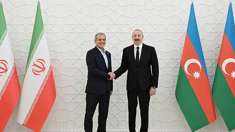 İran Cumhurbaşkanı Mesud Pezeşkiyan, resmi temaslarda bulunmak üzere Azerbaycan’ın başşehri Bakü’ye gitti. Pezeşkiyan temasları kapsamında Cumhurbaşkanı İlham Aliyev’le bir ortaya geldi.